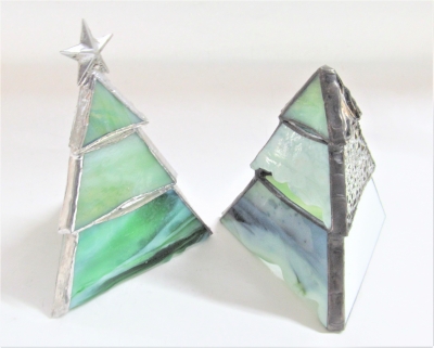 JUGEMテーマ:ステンドグラス ハロウィンも終わり 町中も教室も 一気に クリスマス一色になりました 究極の(?)1ピースで出来る クリスマスツリーを イリィディセントガラス(虹色に光る)で作ってみました ガーデンピックにしなくても オ...