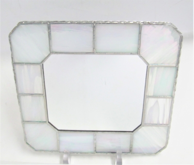 JUGEMテーマ:ステンドグラス 白のイリィディセントガラスで 優しい印象の鏡を制作されました 画像では、分かりにくいですが ほんのり虹色に光っています こちらのガラスは、 スペクトラムの309IR 廃盤になった 今となっては、貴重なガラスです アメリカのガラスメーカー スペクトラムは、環境問題、財政問題等の原因で廃業 世...