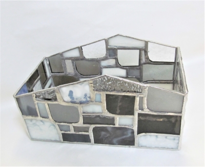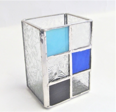 JUGEMテーマ:ステンドグラス 鉛筆立てを作りにいらして下さいました 一年生のお子様です 正面の6枚のガラスをお選びになり スタート 半田付けも 落ち着いて出来ましたね! ブルーの濃淡と紫 三種類のクリアガラスを合わせて モダンな色合いのペン立てが完成しました LEDのキャンドルも入れて...