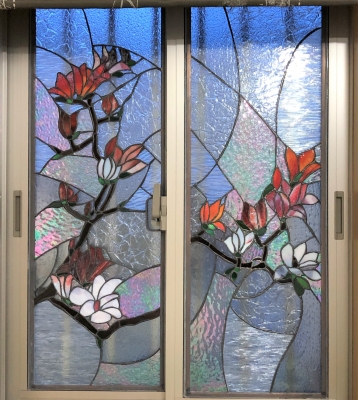 JUGEMテーマ:ステンドグラス 窓に入る 木蓮のパネルを制作されたNさんより ご自宅で撮影された画像を頂戴しました! ありがとうございます! 朝日、日中、夕方、夜と 時間の経過と共に ガラスの色が美しく変化します 日が高く上がる前 クリアガラスのテクスチャーが はっき...