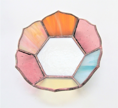 JUGEMテーマ:ステンドグラス お花のトレーを作りにいらして下さいました ハンドメイドがとてもお好きだそうです 花びらの部分のガラス 六枚をお選びになり 丁寧に作業されました ガラスは、薄ピンク2枚、アンバーの色違い2枚 ブルー、イエローです アンティークな雰囲気に 仕上がり とても素敵ですね &nbs...