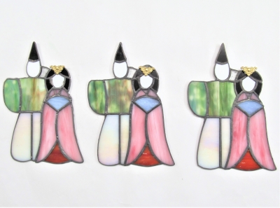 JUGEMテーマ:ステンドグラス お姉様へのプレゼントに お雛様を制作されました 男雛の着物のガラスは、ヤカゲニー 色のグラデーションが素敵です 女雛の着物のモトルも とても上品で綺麗です 吊しても 立て掛けても 飾れます 心...