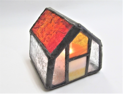 JUGEMテーマ:ステンドグラス 可愛い 家の形の キャンドルホルダーです LEDのキャンドルが 丁度入ります 赤い屋根が 光を乱反射して 綺麗ですね ...