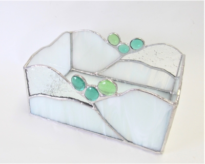 JUGEMテーマ:ステンドグラス 以前 制作した ミニティシュボックスと お揃いのデザインで、化粧品等を入れる ホルダーを 制作されました ティシュケースよりも 2割くらい大きめです ナギット(ガラス玉)も 綺麗ですね ステンドグラス教室・工房 アトリエ・まりね http://atelier-marine.tokyo/...