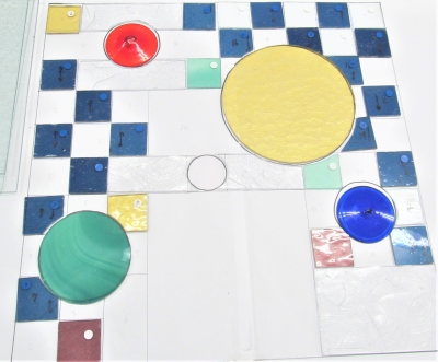 JUGEMテーマ:ステンドグラス 東京オリンピックも 意識されたパネルで 赤と青の円形ガラスがロンデルです インクブルーのガラスは、アンティークです 赤と青の ロンデルがポイントカラーになっていますね ロンデルガラスとは、大きな平面のガラスをまだ作れなかった時代 宙吹きしたガラスを 遠心力を利用し円盤状にした物で &nbs...