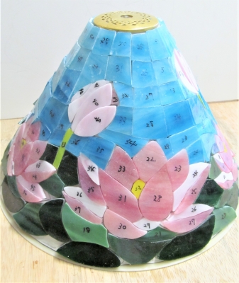 UGEMテーマ:ステンドグラス お花のアロマランプです 花の芯には、ナギット(ガラス玉)が入りました 2面がピンクのお花 2面がライトブルーで 4面体のランプです &...