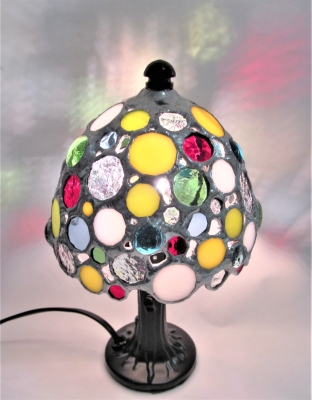 JUGEMテーマ:ステンドグラス 様々なガラスを まん丸にカットして 可愛いランプを制作されました 高さ約16?の ミニミニランプです 壁に映る 水玉模様も 綺麗ですね こちらは、白熱球で点灯してみました 暖かみのある 光になりますね ...