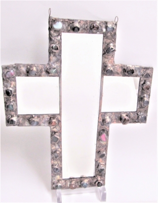 JUGEMテーマ:ステンドグラス 以前お読みになった小説に 隠れキリシタンが 宝石の付いた十字架を 代々守っている という下りがあり 物語をイメージした 十字架を制作されました クロスの中央は、鏡です フレームには、天然石を 半田付けをしました ア...
