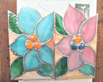 JUGEMテーマ:ステンドグラス お花のランプは、4面で ピンクの花2面 ブルーの花2面です 半田がスタートしました 次回、完成されるご予定です ナギットのペンダントトップは、お花の形にされました 黒く腐食して 金具を付けます 次回は、薔薇のフット...