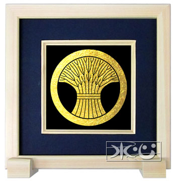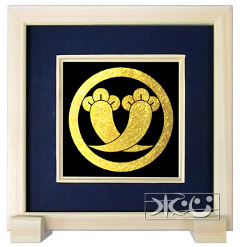 JUGEMテーマ:家紋 二十四金金箔使用でつくる家紋額であり、歌舞伎座木挽町広場限定発売の商品であります。 純金泊で描いたことで、舞鶴紋の美しさが際立つものであります。 家紋の様式美の根底をなす円を基調とした等間隔・当分割の整然美がよく表れた紋章であります。