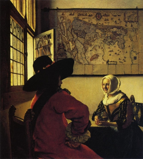 絵画ファンの皆さま、こんにちは! フェルメールは自身の作品の中に「絵」を描く画中画をよく描きます。 今日はフェルメールの「画中画」に注目してみたいと思います。 また画中画の代わりに ”地図” を描いた作品も複数あります。 「画中画」と「地図」それぞれを見ていきたいと思います! それでは早速フェルメールの画中画からみていきましょう。 「二人の紳士と女(ワイングラスを持つ娘)」 ...