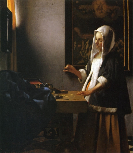 絵画ファンの皆さま、こんにちは! 今日はフェルメール「天秤を持つ女」について見ていきたいと思います。 フェルメール【天秤を持つ女(真珠を量る女)】 制作年:1662-1665年 原画サイズ:42.5×38cm 所蔵:ワシントン・ナショナル・ギャラリー この作品は女性が窓辺で天秤を持って真珠を量っている様子を描いた作品です。 別名「真珠を量る女」としても知られている作品ですが、実は天秤には何も乗っていないのです。 台の上に真珠が散らばっていることから、真珠を量...