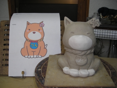 JUGEMテーマ:陶芸 薩摩川内観光物産キャラクター「西郷つん」の陶器のオブジェを試作中です。 現在、第1の工程の成形( 粘土で「つん」の形)ができたところで、残り素焼き、施柚、本焼きの3工程、デザインどおり色を出せるかが課題です。 完成したらデザインの使用届出を出すつもりです。その時はまた投稿します。 つんのオブジェの使い道は未定で、なんかよい使い道があればと思っています。