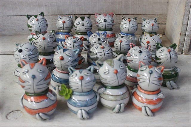 JUGEMテーマ:陶芸 持舟窯のおすまし猫ちゃんが、すぐに嫁入りしたのであらたに作りました。 生徒さんに、涼しげなお花を頂きました。
