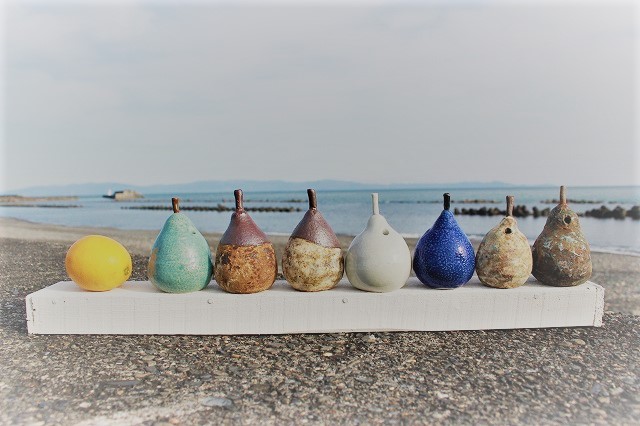 JUGEMテーマ:陶芸 寒いのですが、気分は春 用宗海岸をバックに撮影会です。 知り合いから頂いた、甘い味のするレモンちゃんもいっしょに。 洋ナシの中は空洞で、一輪挿しになります。 色んな、お花が咲きだしますので、洋ナシに飾るとかわいいですよ。