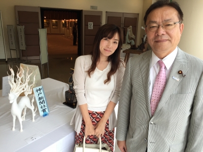 JUGEMテーマ:陶芸 今日は町展の表彰式があります。 で、朝衆議院議員の谷公一先生が作品を見に来てくださいました〜。 忙しいと思うのに嬉しい! なので記念撮影! 記念品に盾を貰いました。 物よりもとっても嬉しいです! 他の作品も本当に素晴らしくて 賞をもらえたのがとっても幸運だったと思うので 今後も精進して趣味のひとつにしていきたいです。