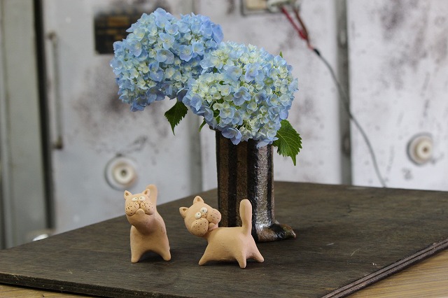 JUGEMテーマ:陶芸 It is one of the best seasons here now and so many flowers are blooming. But the hydrangea is a sign of the rainy season's coming... 今は最高の季節でたくさんの花が花盛り。でも、紫陽花は梅雨がやって来るサイン・・・ Hydrangea is this one behind me! 紫陽花はあたしの後ろのこれ!