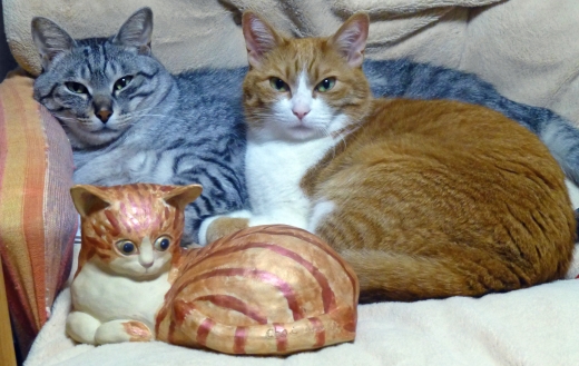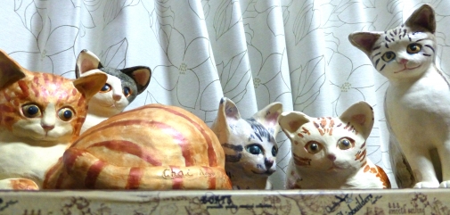 JUGEMテーマ:陶芸 今、窯たき中です。 べそ猫ちゃんたち、窯たきに入れてもらえなかったとすねています。 もう一度、窯たきするから大丈夫だよ。