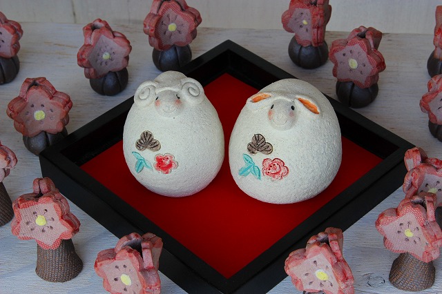 JUGEMテーマ:陶芸 今日は、お雛様 持舟窯はひつじ雛です。 お花に囲まれてうれしそう。 お花は、今度は香立てになります。