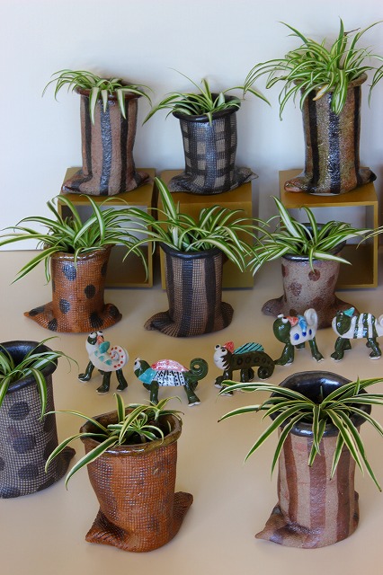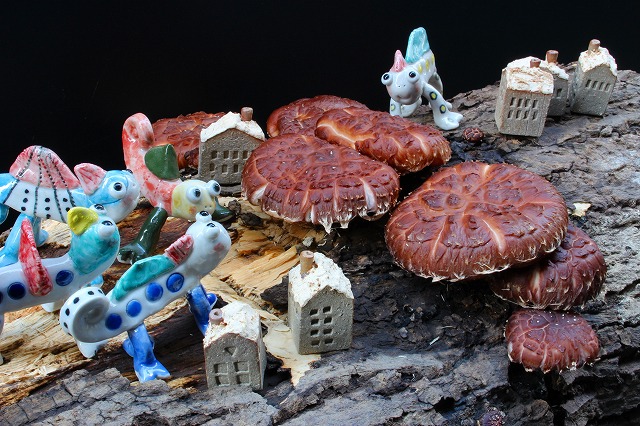 JUGEMテーマ:陶芸 昨日の雨と、あったかい今日できのこ山は大騒ぎ。 モッピーたちが、次々ときのこ山に登っていきました。 まずは、カメレオンたち。 そして、にゃん子ちゃんたち。 最後に、ひつじたちと、迷彩柄のイモムシ君。 みんながきのこ山から下りた後に わたくしが、大きくなった きのこちゃんを収穫に行きました。