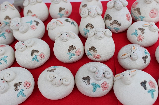 JUGEMテーマ:陶芸 吉田公園クラフトフェアー今日で終わりました。 天候にも恵まれ、少しの雨もありましたがお客様もたくさん来ていただき あったかいお言葉もいただき、充実した楽しい3日間でした。 ほっかほっかの焼きたての、干支の未さん達も皆さんにあったかい言葉を頂、皆さんのおうちで 癒しの空間を演出してくれるといいな。