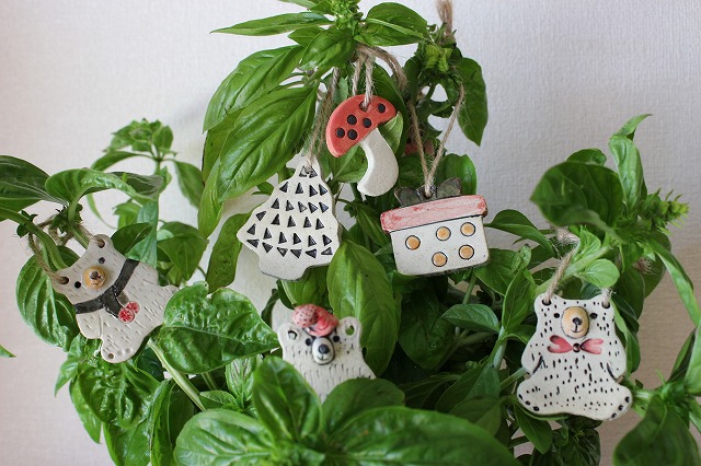JUGEMテーマ:陶芸 生徒さんにバジルを頂きました。 バジルソースの前に、クリスマスオーナメントを飾ってみました。 くまさんはブローチにもなります。