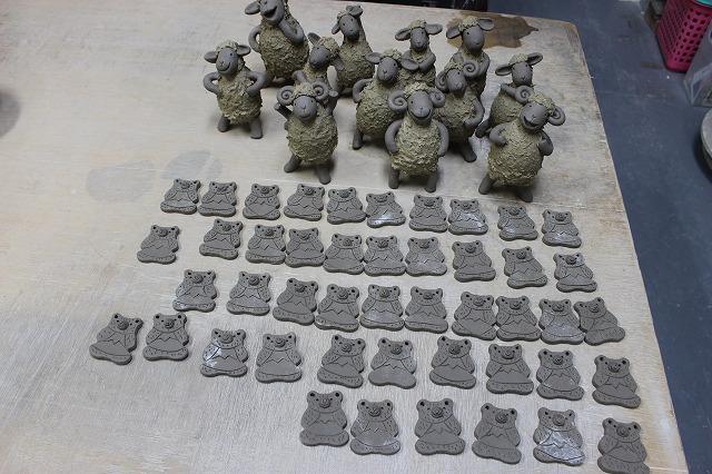 JUGEMテーマ:陶芸 明日から、土曜、日曜と クラフトフェア蒲郡2014に出店します。 天気予報はよくないみたいですが、いい出会いが出来たらいいなぁと 思っています。 次の本焼きに入れる作品です。 未さん達が頑張れと言っています。