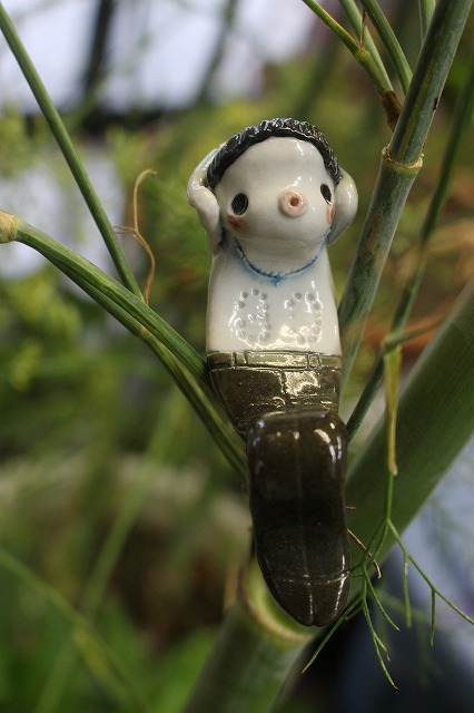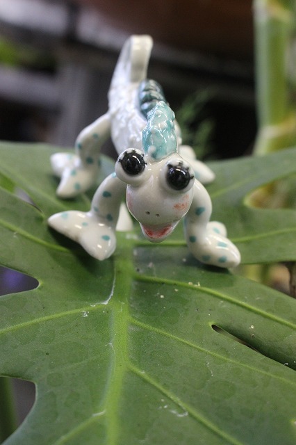 JUGEMテーマ:陶芸 台風予防の為避難してきたグリーン達 ギャラリーのモッピー(持舟窯の作品たち)のカメレオンが 早速探検に出かけました。 ジャングルのようになったギャラリーで迷ってしまいました。 どうしよう〜。 大丈夫、僕がついているから! 君のそばには、いつもいるから