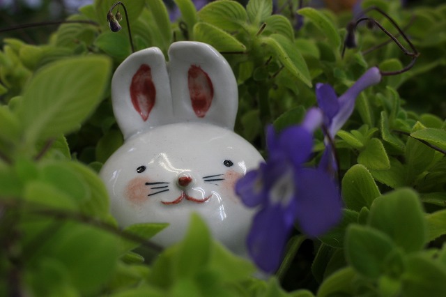 JUGEMテーマ:陶芸 昨夜のテレビで用宗海岸の波を映していたそうですが、その放送を見られていた皆さんから ご心配のメールや電話がありました。ありがとうがざいます。 テレビ映りが一番派手な場所を撮って放映していたみたいでしたが 我が家は、1キロぐらい離れていますが、全く何の被害もなく、用宗も何の被害もなく良かったです。 避難していたグリーン達を戻すときに、同じお花の鉢にかくれんぼしていた3人を紹介します。 最初は、しろの色とながーい耳の、うさちゃん。みっけ” ほかにも...