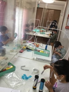造形クラスでは万華鏡を作りました。 筒の中にガラス板を組み立てて入れ、レンズの中身を自分で選んでセットします。仕組みができたら周りの飾り付け!ハサミやのりを使って自分だけの素敵な万華鏡が出来上がりました。 こちらは幼児クラスの様子。ハサミを使って色紙を切り、こだわりのデザインを作ります。みんな集中しています! 並べてみるとそれぞれちがってステキですね!みんなの個性あふれる作品ができました! 2年生Sちゃんは紫色をベースに、キラキラひかる色紙やシールを貼り...