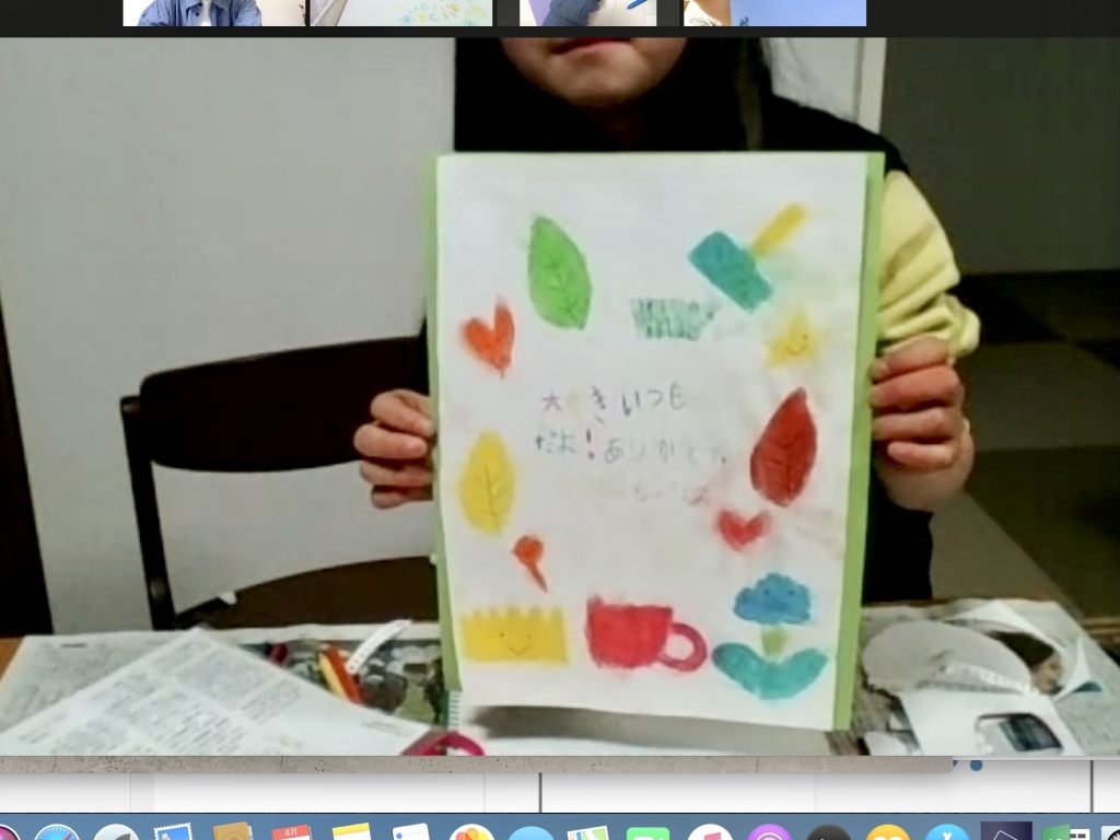 オンライン絵画クラスでもパステル画を描きました。 使う型紙を全部自分で作るので時間がかかりましたが、贈る人のことを思って、みんな頑張って制作しました。 3年生Nさん、お母さんの好きな紅茶をイメージした作品を描きました。色えんぴつで描き加えた顔がかわいいですね。元気な色のステキな作品になりました。 パステル画が好きな2年生Kさん、型紙の順番や向きを工夫して並べ、リースの形を作りました。同じ型の中に同系色の色を組み合わせて、グラデーションができています。 &nbs...