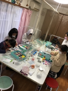 造形クラスでは、みんなが大好きな粘土で制作をしました。 今回はホイップ(シリコン)を絞る作業も加えて、ビンのふたの上に自分の好きな世界を作りました!洋菓子や和菓子、動物やキャラクターなど、色々なパーツが出来ましたよ。 木曜日の造形クラスです。 最後の仕上げに向かって集中力を高めています。ホイップを絞る作業は、とても力がいりますが、高学年になるとみんな上手に絞る事が出来ました。 6年生のMさんは、自分の一番好きなキャラクターのウサギさんを作りました。...