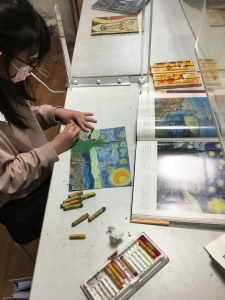 絵画クラスは名画の模写を行いました。 ブーピー工房には資料の本棚があり、画集も沢山あります。今回は画集から昔の画家さんが描いた絵を見て、出来るだけそっくりに描き写す課題です。良くみて描くことで、絵の構図や色のなりたち、効果的な線の描きかたなどを学びます。 自分のお気に入りの絵をみつけて描くので、描き始めに悩まずに、楽しくてのめり込みやすい課題でもありました♪ たくさんの画集の中から自分の好きな作品を選ぶことも楽しい課題です。ゴッホはみんなに人気がありました! &n...
