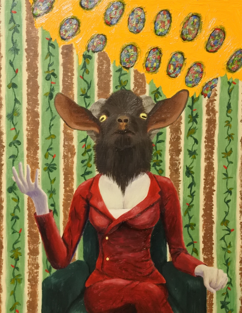 JUGEMテーマ:絵画 はじめまして! オリジナルの油絵販売をしているShiva'artです! 突然ですが、悪魔バフォメットをご存じでしょうか? ゲームや漫画でその名前を耳にした方もいると思います。 その姿には諸説ありますが、両性具有のヤギ頭で、右手は溶解、左手は凝固を示していると言われています。 (溶解と凝固は錬金術と関連しているとか) そんなバフォメットを現代風に描いたのがこちら! ソファに座るバフォメット。 背...