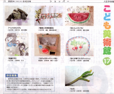 ショッパーの「こども美術館」に教室のみんなの力作が掲載されました!全ての作品が、ステイホーム中にオンラインや自宅で製作された作品です。 じっくりと時間をかけて作られた「力作」をぜひご覧になってくださいね♪(クリックすると拡大表示されます) JUGEMテーマ:絵画