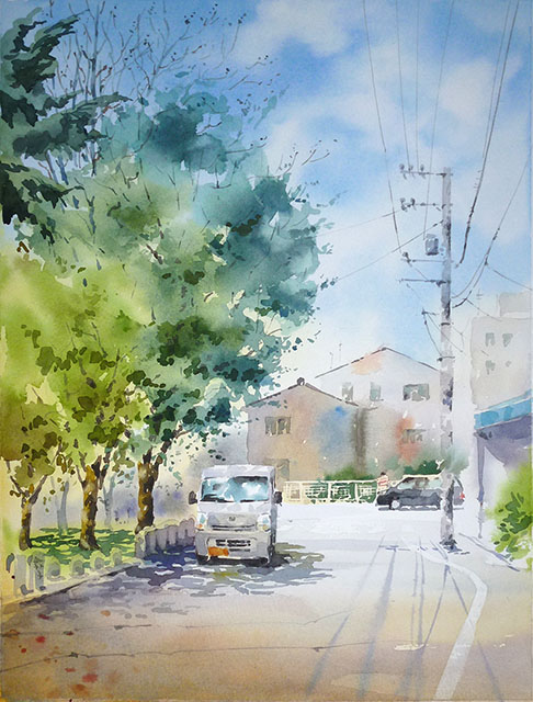スーパーに買い出しに行くとき通る道、 ちょうど日差しのいいときに通りかかり、 木洩れ日がいい感じだったので写真を撮って帰りました。 普段素通りしていた場所なのに、絵を描く場所を探して歩いていると、 案外いろんな場所に目が留まるものです。 感性豊かな人は、もっとたくさん気がつくんだろうな、 一歩一歩、成長していきたいです。