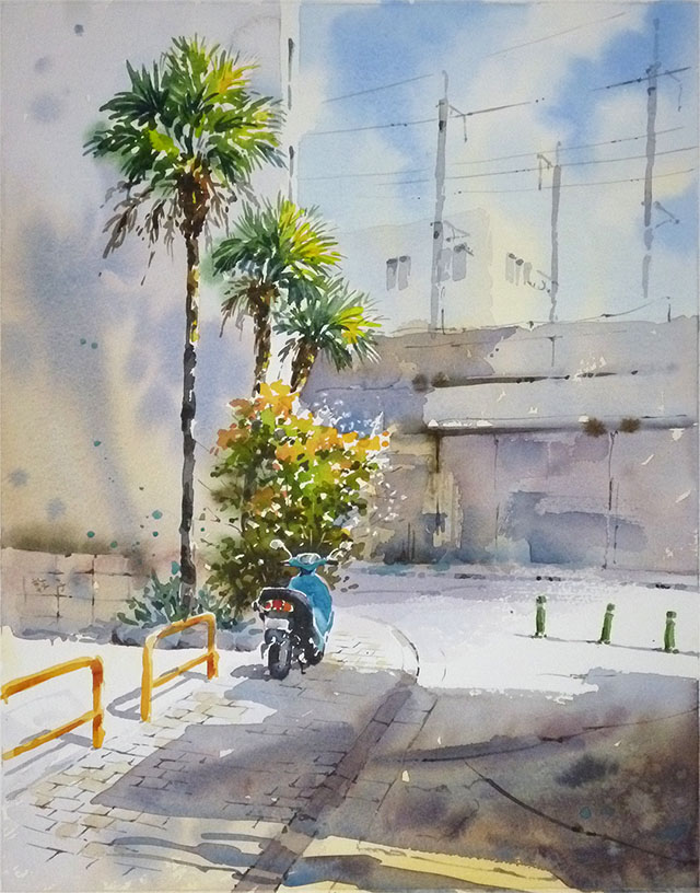 自粛生活で、スーパーに買い出しに行くのが楽しみです。 おいしいもの、たくさん買って帰ります。 それだけでワクワクするこの頃 笑 行きかえりの道で、どっか絵にできる所ないかなあ?と探しながら歩いています。 影のかかり具合で、平凡な木と路駐の車だけでも、 なんだか素敵に見えたりします。 いつも通る道で、ちょっと目に留まったところを写真に撮ってきました。 家に籠って、写真から絵を描いています。