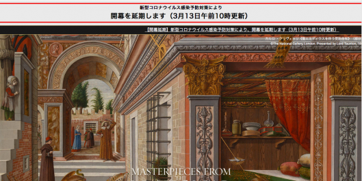 絵画ファンの皆さま、こんにちは! 今日はひとつ残念なお知らせです。 【ロンドン・ナショナル・ギャラリー展】の開幕が延期になりました。 ↓HPでの開幕延期告知↓ 国立西洋美術館で2020年3月3日から2020年6月14日まで開催予定だったのですが、 新型コロナウイルスの影響で、会場である国立西洋美術館が臨時休館となります。 それに伴い【ロンドン・ナショナル・ギャラリー展】も開催延期となりました。 ※【ロンドン・ナショナル・ギャラリー展...