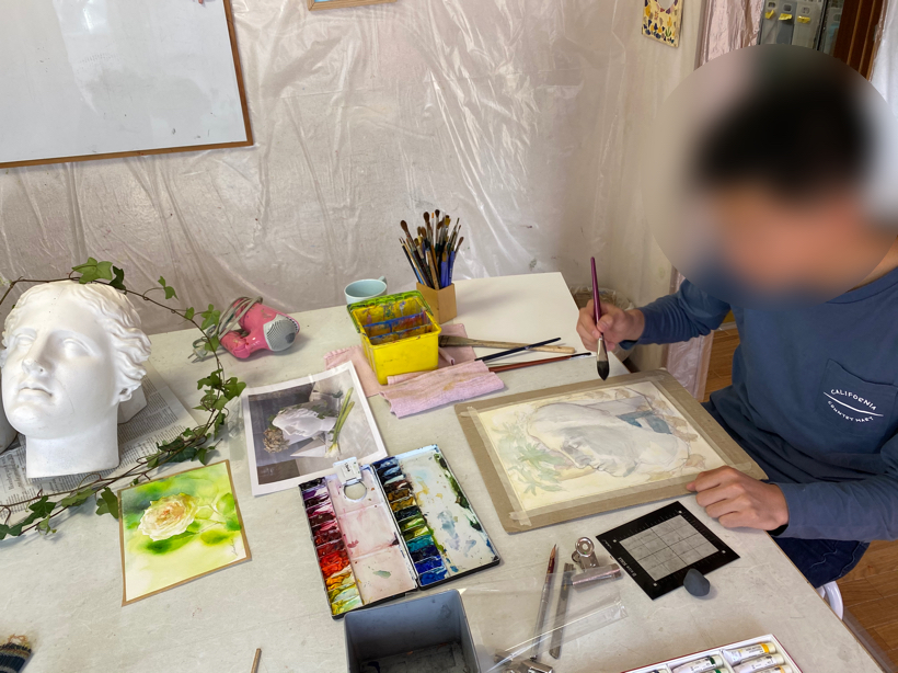 JUGEMテーマ:絵画 大人水彩画クラスでは 多肉植物とミロのヴィーナス像の続きを 描いています。 水彩画の技法をつかい グレーを大切に考えて描きます。 絵画に於いては、 グレーはとても重要です。 様々な色調のグリーンがとても綺麗です。 途中ですが、優しい色使いに癒されます。 構成を真剣に考えていました。 これからがと...