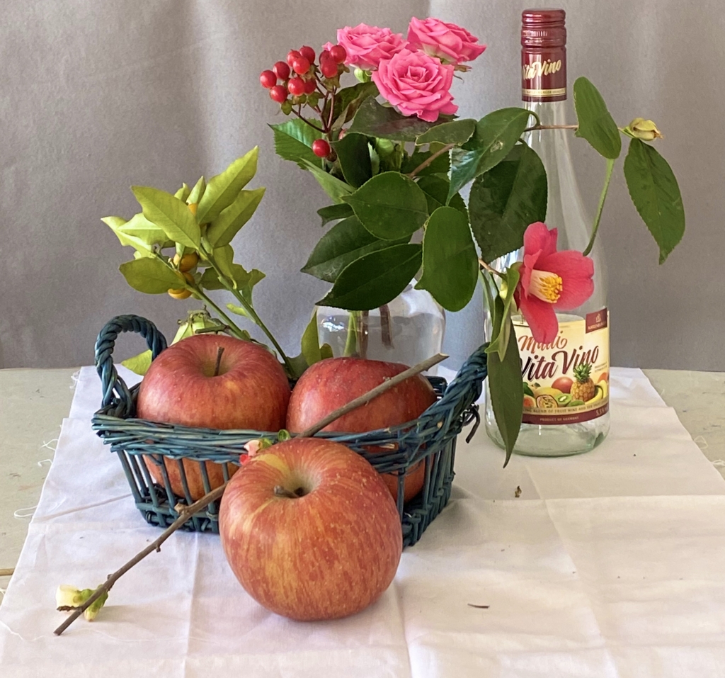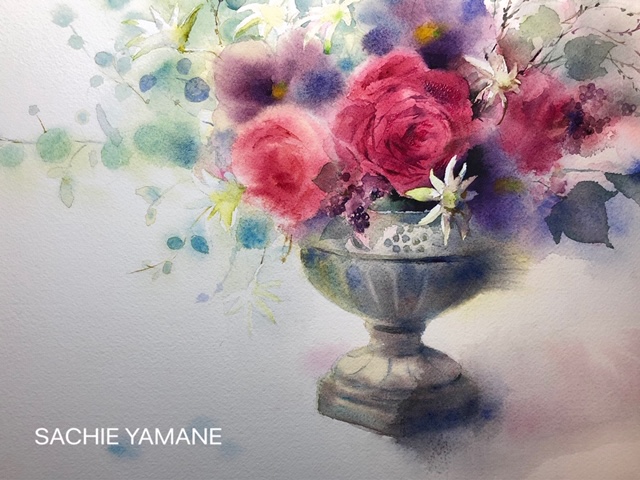 大人水彩画クラス2月はりんごと椿、金柑などを描きました。 林檎は五角形。基本に立ち返ります。 マスキングインクをつけ、紙の白い所を生かして行きます。 講師も途中まで描きましたが、紙が風邪をひいていました。 前回の課題をお持ちくださいました。 カサブランカがとても丁寧に描かれています。 ガラスの質感もよく表れています...