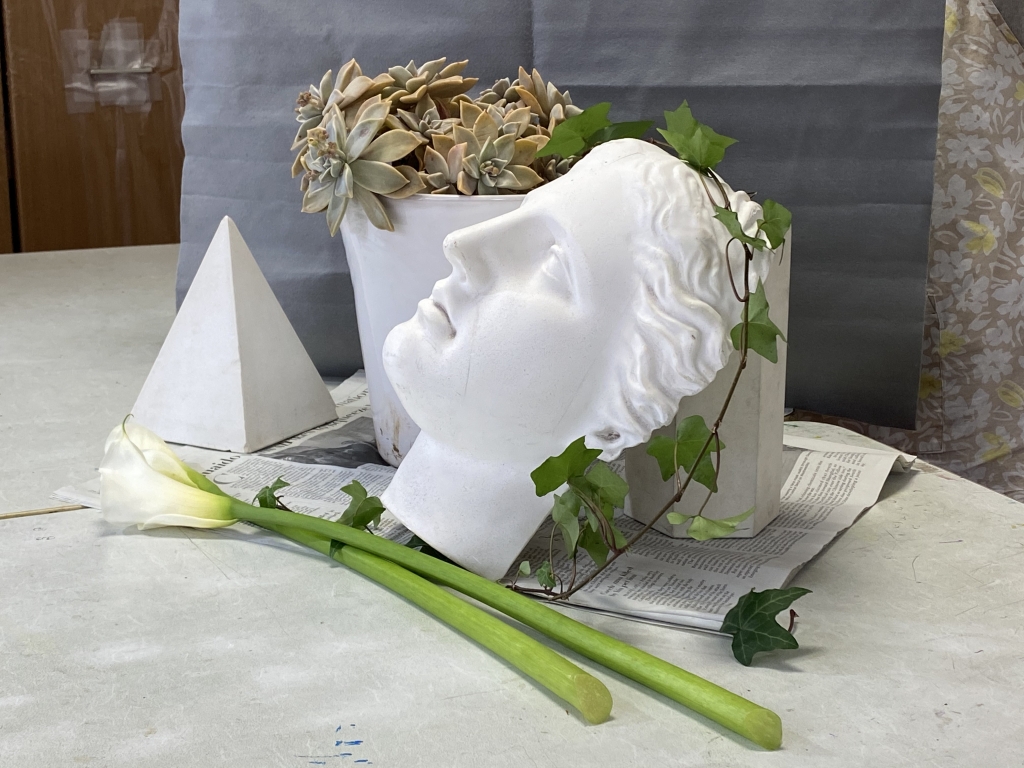 大人水彩画クラスでは 多肉植物とミロのヴィーナス像を描いています。 難しい〜!と言いながら 皆さん楽しそうに熱心に描いていました。 モチーフは顔面ですが、首像を見ていただき 実際に触ってみたりして、凹凸などを体感してもらいました。 先月の作品を仕上げてお持ちくださいました。 林檎が鮮やかな色と質感です。とても美味しそうです♬ 鉛筆でグレージングを行ったそうです。 不思議な質感が魅力的です♬ 次回の...