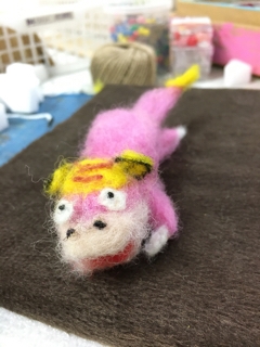 造形クラスでは、羊毛フエルトで制作をしました。小さなマスコットですが、羊毛用の針で丁寧に刺し続ける根気のいる作業で、作る事は大変です。今回も予想を超えた、素敵な作品が出来ました。中学年以上の作品をご紹介します♪ 5年生Hちゃん。ポケモンのキャラクターを作りました。 手足もついて、本当に細かく出来ましたね!生きている様です。 中学3年生Kさん。春には高校生になり、卒業をするKさん。 小学生の頃から長く通ってくれました。高校の美術選択コースでも、楽しんで頑張ってくださいね! ...