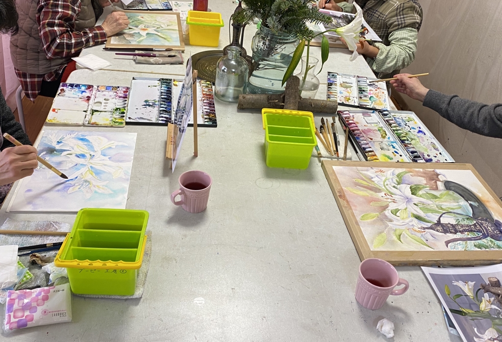 JUGEMテーマ:絵画 ブーピー工房大人水彩画クラスでは、 もみの木とカサブランカの制作を進めました。 生命力溢れるもみの木と清楚なカサブランカ。 悩みながらも、生徒の皆様は楽しんで描いています。 綺麗な色の重なりや滲みやぼかし、色彩の論理など、 たくさんの要素が詰め込まれています♬ 清楚なカサブランカが瑞々しい作品です♬ よく構成を考えて、密度のある作品になりました♬ ...