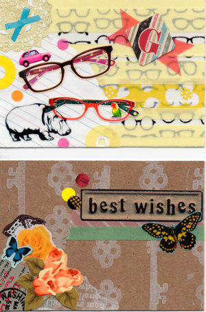 新瀬です。 ATCの続きです。 交換してくださる方を募集しております。 詳しくはこちらの記事で! 上・めがね〜 最近、かわいい眼鏡が多いですね。 私もガチな眼鏡野郎です。眼鏡は体の一部です。本体が眼鏡置きです。 チラシの切り抜きと、包むマステ、GのシールはGlassesのG(∩´∀`)∩ 英語ノートを使ったので、なんか女子高生っぽいイメージになりました。 下・スタンプで背景を作りたかった。むずかしい…。 ATCには、もっと小さいスタンプの方が合うかな? 白の...