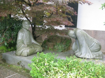 JUGEMテーマ:博物館. 11月9日(日)、8年ぶり2度目の山中温泉に着いたのは小雨降る午後でした。 ホテルに荷物を置いて、まず、「芭蕉の館」を見学。 館の入り口に、「奥の細道 芭蕉と曾良の別れ」の石像がある。 芭蕉の前で、体格のよい曾良が肩をすぼめて悲しんでいる様子が感じられる。 涙を流し、、、鼻先に水滴が・・・覗き込んで見るとそれは雨の滴でした。(=´Д`=)ゞ 「奥の細道 芭蕉と曾良の別れ」の石像 元禄2年(1689年)陰暦3月27日、 俳聖松尾芭蕉は弟子の曾良を伴い、江戸から奥の...