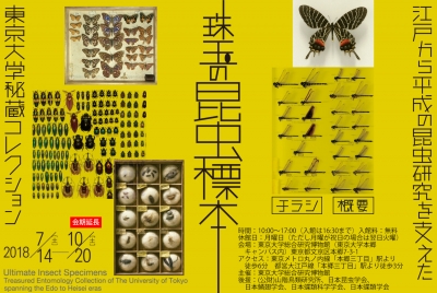 JUGEMテーマ:博物館 ♠とっても興味深い展覧会を見つけたのでご報告です〜 日本最古やブータン国王贈呈の標本を展示 東京大学総合研究博物館に収蔵されている約70万点の昆虫標本のうち、秘蔵コレクション約40,000点を一挙公開。 日本最古の昆虫標本、ミツ...