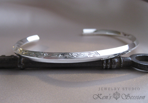 JUGEMテーマ:オリジナルデザイン・ハンドメイド JUGEMテーマ:ファッション JUGEMテーマ:ジュエリー JUGEMテーマ:彫金 オーダージュエリーのご紹介をさせていただきます。 ご好評をいただいております、唐草彫りの作品ですが、今回はシルバーのバングルに唐草彫りを装飾しました。 シルバーの角線を曲げて作っているバングルですが、もともとは自分が着けたいと考えて制作したデザインで、それを見てアレンジをしたオーダージ...