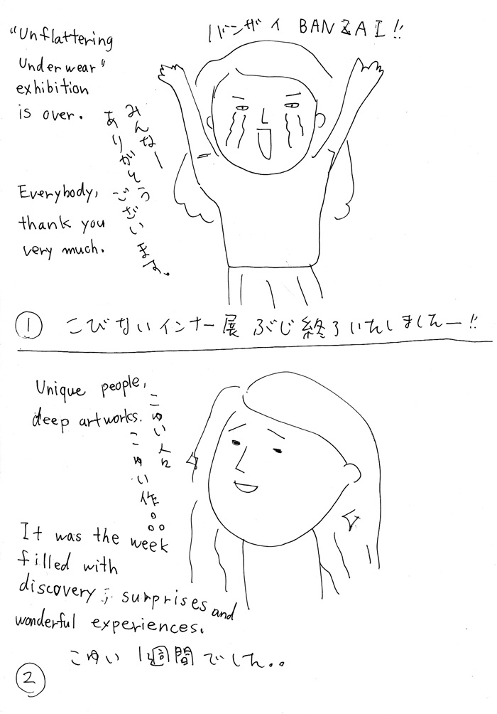 JUGEMテーマ:展覧会 更新遅れましたが おかげさまで、14日をもって 媚びないインナー展終了いたしました〜! 来ていただいた皆さまありがとうございました〜。 今回の展示では何故かお客様に絵が色っぽくなってきたとか いままで言われたことのないようなことを言われました!(照) これもインナー効果??かもしれません。。( ´ ▽ ` )ノ あとやはり、展示しないと次の課題って見えないなぁと つくづく思った展示でした。 展示することできっと ...