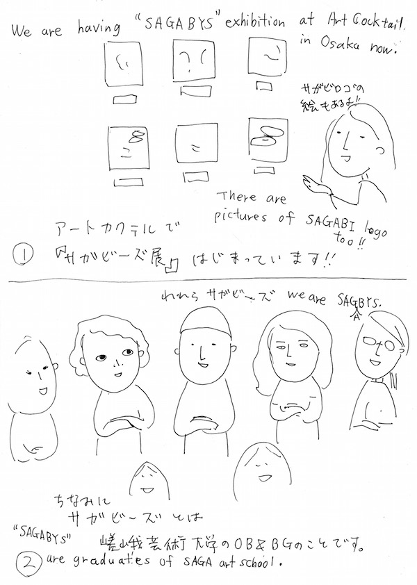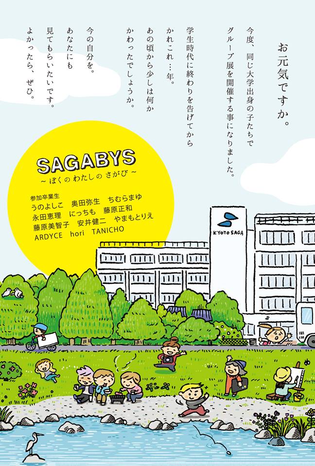 JUGEMテーマ:展覧会 今日、5/20から5/28まで 大阪のアートカクテルでSAGABYS展開催します。 以下詳細情報です! ____________________________ 「SAGABYS〜ぼくのわたしのさがび〜」京都・嵯峨美術大学/短期大学のOBOGによるグループ展 5/21(日)15時からは出展作家が集ってオープニングパーティを開催、 さがびの思い出話に花を咲かせることでしょう!簡単なお飲み物などご用意しておりますので、 どなたさまもお気軽にお立ち寄りください...