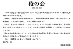 武蔵野美術学園オープンセミナー講師の久野和洋先生が展覧会に参加されます。 是非ご高覧ください。 第8回 稜の会 東京展 2017.2.8(水)〜14(火) 高島屋日本橋店6階 美術画廊 〒103-8265 東京都中央区日本橋2-4-1 TEL 03-3211-4111 大阪展 2017.2.22(水)〜28(火) 高島屋大阪店6階 美術画廊 〒542-8510 大阪市中央区難波5-1-5 TEL 06-6631-1101 名古屋店 2017.3.15(水)〜21(火) ジェイアール名古屋タカシマヤ10階 美術画廊 〒450-6001 名古屋市中村区名駅1-1-4 T...